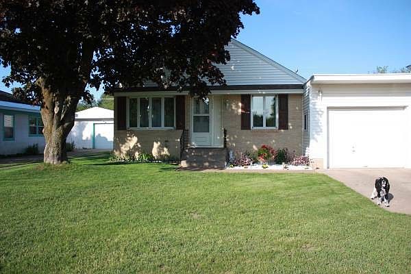 Whether you enter the home from the front door or the equally inviting side door you will be amazed by the bright open space this home offers! The front entry has a tiled floor that transitions into the living rooms neutral carpeting; this room has large windows and access to the homes kitchen and hallway. The side entry opens into the spacious kitchen that is nicely updated and has great counter space as well as a breakfast bar that connects the dining area. The kitchen features neutral counters and a glass tile backsplash that accent the dark wood cabinets. The adjoining dining area has a corner wood burning fireplace and sliding glass doors opening to a backyard deck. This is a great space to spend your time! The home has 2 bedrooms; one has wood floors that flow right down the hallway leading to the second bedroom. The second bedroom has an entrance from the hallway and a convenient second entrance from the dining area. The full hall bathroom has an updated waist height vanity and great storage! There is even a clean and dry basement that could be additional living space or great open storage and a 1 car garage as well as rear alley access!
