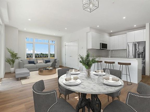 South east cornerContemporary living spaceOpen concept floor planBright white kitchenSoft close cabinetryQuartz counter topsCloset organizers
