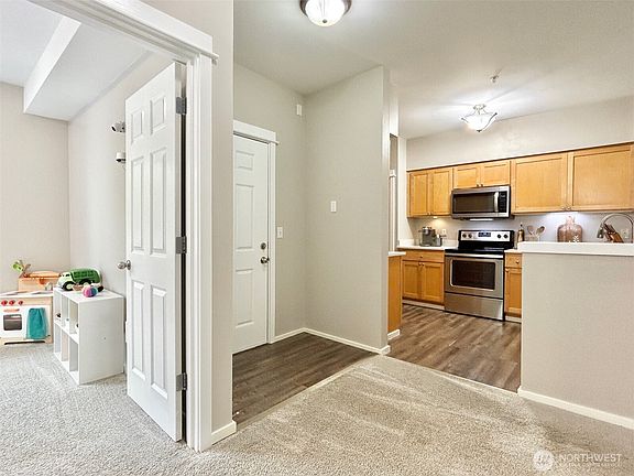 Enjoy this open concept condo and conveniently located minutes to 405, I-5 and shopping. Kitchen opens up to living and dining area, ideal for entertaining; a gas fireplace creates a cozy space. Spacious master with full bath and walk-in closet. Washer/dryer and kitchen appliances all stay. Private patio looks out onto greenbelt, a relaxing place to enjoy your morning coffee. Condo has detached garage and 1 reserved parking spot right out front. Conveniently located near grocery stores and restaurants and I-405 No Rental Cap. UNIT FULLY INSPECTED! report upon requested