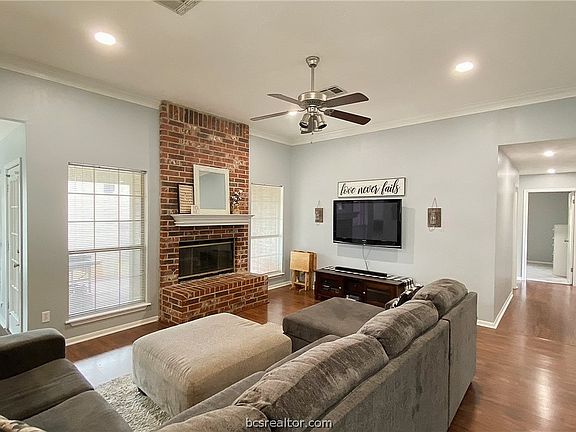 Fantastic updated home is move-in ready & close to it all! This charming 3 bedroom, 2 bathroom home has an open layout feel that welcomes you right from the start. As you walk into the spacious entry you'll be greeted by a living room large enough to accommodate a sectional sofa and a fireplace! The kitchen has granite surfaces, stainless appliances & lots of counter &cabinet space. There are 2 eating areas, including a breakfast space complete with a buffet that would be great as a coffee station. The formal dining room has a raised ceiling and lots of natural light. There is beautiful laminate flooring in all of the common areas except the kitchen & breakfast area, which have tile. The bathrooms in this great home have been beautifully remodeled with quartz vanity tops, sparkling white vanities and subway tile. The primary suite bathroom includes double sinks, a soaking tub and a fantastic tiled shower with glass enclosure. The primary bedroom is spacious, well lit & has a raised ceiling. It has new carpet, as do the two additional bedrooms. As you venture out back you'll find a covered patio large enough for you grill & a concrete patio that extends out into the yard. The patio is accented three brand new raised beds & a privacy wall. There's even a new fence on 3 sides of the yard. Did we mention location? You're just minutes from The A&M campus, Health Science Center and Vet School. Just up the road is a nice Wal-Mart & lots of quick dining options. This one won't last!