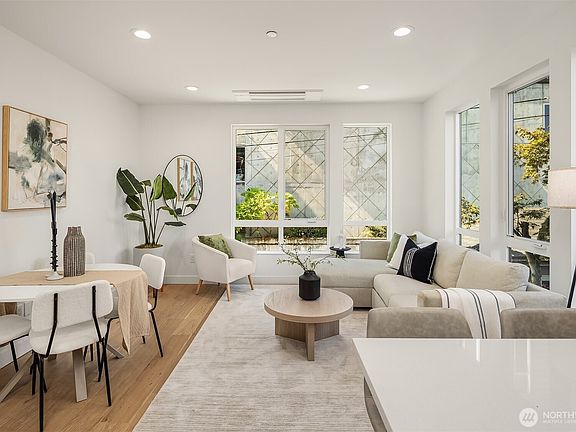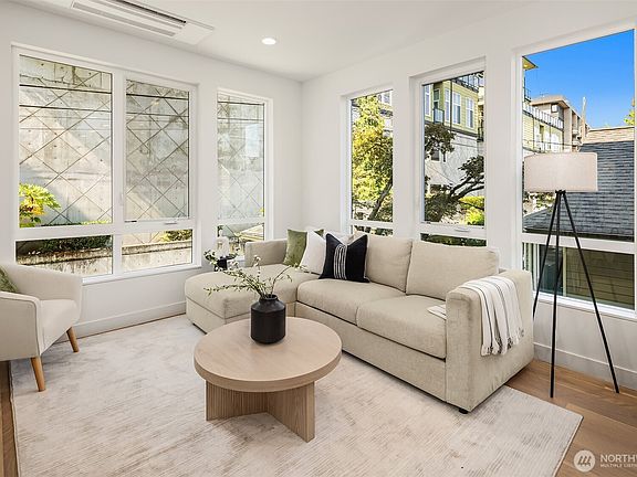 Live where Seattle comes alive—just minutes from SLU, lakeside trails, and Queen Anne cafés. From your private rooftop deck, soak up Lake Union views, sparkling city lights and host summer nights under the stars. Inside, three bright bedrooms and an open, social floor plan make everyday living feel connected. The sleek KitchenAid kitchen is ready for dinner parties, while the floating open-tread staircase doubles as a design statement. Need space to hustle or sweat? The bonus flex room is perfect for your WFH setup or home gym. Zoned heating + A/C keep it cool in summer and cozy in winter. Covered EV-ready parking, washer + dryer included, engineered hardwoods, and plenty of storage round out the perks. Urban living, elevated.