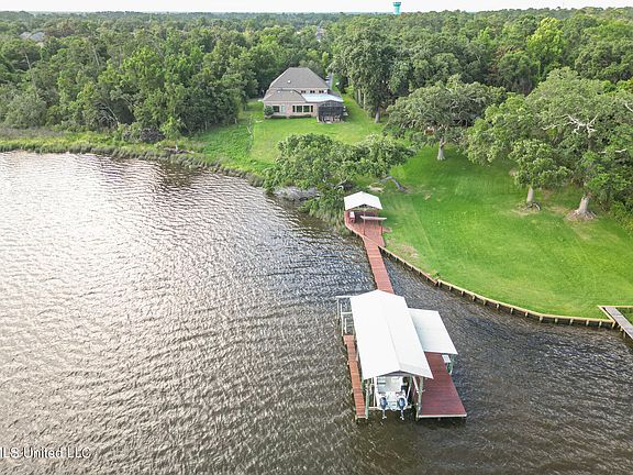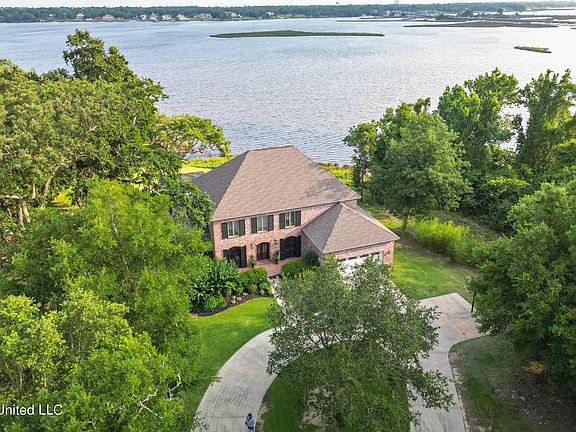 Luxury waterfront home nestled along the serene Biloxi Back Bay spanning over 2.7 acres of pristine land. This property offers a rare opportunity for deep water access with breathtaking sunset views over the Bay that does NOT require flood insurance and DID NOT take on water during Hurricane Katrina. The boat house has two boat lifts, allowing you quick accessibility to the array of amazing waterfront restaurants. Step inside this grand estate home boasting 6 bedrooms, 4.5 baths, an office, formal dining, game room, and media room. The main living area features 10-foot ceilings and the open concept layout that perfectly frames the stunning water views. The gourmet kitchen offers custom cabinetry, exquisite granite counters, and top-of-the-line appliances including a GE Profile double oven and Dacor microwave, Viking gas cooktop, beverage cooler, ice maker, wine refrigerator, warming drawer, and a pot filler. The separate guest quarters downstairs offer privacy and comfort, complete with a full bath, mud room, and a private exterior entry. Oversized master bedroom where a wall of windows allows for an uninterrupted view of the bay. The master bath is a sanctuary of relaxation, featuring double vanities, custom cabinets, a luxurious steam shower, an Air Ance tub, and a generously sized walk-in closet with built-ins. Upstairs, the rest of the family will delight in the abundance of space and amenities. A media room awaits with an 86'' TV, fully equipped with theater recliners and surround sound equipment that will remain with the property. The game room, with its versatile design, can be tailored to suit your preferences. Additionally, four bedrooms and two baths provide ample accommodation for loved ones and guests. Step outside and discover a haven of relaxation in the lanai, where a spacious patio awaits. This screened in outdoor space allows you to enjoy the refreshing coastal breeze while keeping unwanted insects at bay. An outdoor fireplace and a TV create a cozy ambiance, perfect for gathering with loved ones or unwinding in the evenings. Roof replaced in 2021 and also includes a whole house generator! Property is on a private drive and appointments are required!