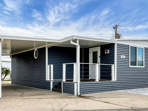 STUNNING COASTAL RENOVATION! This 3 Bedroom, 2 Bath Cottage-core Mobile Home is situated on an oversized Lot and a Half in the top-tier, active 55+ Trailer Estates community. The Open Concept and expansive living spaces are wonderful for entertaining, with vaulted ceilings and tons of natural light! 3rd Bedroom is currently set up as a bunk room, but could be great office space or den. Luxury vinyl plank floors throughout. Kitchen boasts a long center island for gathering with plenty of Shaker style cabinets, modern stainless steel appliances and a ton of quartz countertop space. Generous Primary Bedroom with wall to wall built-in closet. Roomy ensuite Primary Bath has walk-in shower and convenient Laundry space. Impact windows / doors. Huge backyard! Every square inch of the home has been thoughtfully designed to maximize a relaxed, laid back lifestyle. Highly effective, energy efficient spray foam insulation throughout the home. This home is low maintenance. A 7x7 shed for workshop or storage. You own the land. Boaters have direct access to Sarasota Bay from the Marina. Enjoy the large, heated community pool, hot tub, gym and wood shop. The community buzzes with pickleball, shuffleboard, kayaking, horseshoes, bocce, dancing and more. A US Post Office on site. 10 minutes to Sarasota-Bradenton Int'l Airport. Convenient to shopping, restaurants, the Arts and everything in Bradenton/Sarasota. Sold furnished.