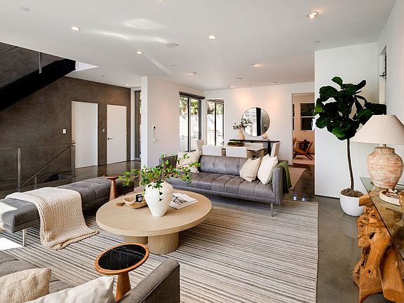 Situated in the heart of Santa Monica, enjoy the ultimate lifestyle with LA's finest coffee, shopping, and dining just moments from your front door. Sophisticated and timeless, this contemporary eco-friendly residence blends architectural elegance with sustainable design all in the award winning Franklin School District. Originally built in 2009 and exceptionally well maintained, this light-filled home features soaring ceilings, skylights, glass walls, and an exposed steel floating staircase, creating an effortless sense of openness and style.The chef's kitchen is equipped with Energy Star stainless steel appliances, a large center island with breakfast bar, and seamless flow into the family room and private courtyard perfect for indoor-outdoor living. The main level also offers a dining room, living room, and an ensuite bedroom ideal for guests or an office. Upstairs, the primary suite serves as a private retreat with dual glass walls, a spa-inspired bath with steam shower and soaking tub, and access to a loft space. Two additional bedroom en-suites complete the second floor, while the top level features two lofts and a rooftop deck showcasing ocean and mountain views. The ground level includes a guest suite with separate entrance, an oversized gym, and a garage made for a car collector's dream with parking for up to 5 cars! Built with sustainable integrity, the home includes hydronic radiant heat floors, low-E double-pane windows, AEP Span metal roofing, natural ventilation systems, and energy-efficient insulation. Offering exceptional design, eco-conscious construction, and an unbeatable central Santa Monica location, this home perfectly balances luxury, functionality, and enduring quality.