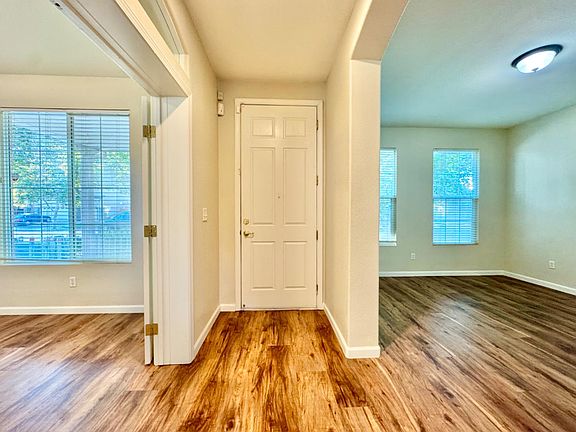 Freshly renovated and move-in ready, this home features a bright and modern layout with desirable touches throughout. The open kitchen includes crisp white cabinetry, stainless-steel appliances (5-burner gas range, microwave/hood), a large island with sink, granite slab countertops, and a roomy pantry. Elegant entertaining is made easy with a formal living room and separate dining room, each connected via double French doors. The main floor flows seamlessly with wood-look vinyl plank flooring, and a separate family room centers around a cozy gas-log fireplace. Upstairs, the primary suite offers comfort and luxury: a ceiling fan/light, an en-suite bath with dual sinks, a soaking tub, a separate glass-enclosed shower, and a walk-in closet. Two additional bedrooms and a full bath upstairs provide flexible options for family, guests, or home office use. Outside, the expansive backyard invites you to relax and play with lush lawn, mature landscaping, and a concrete patio for outdoor dining or gatherings. Located just a short block from an elementary school, shops, and restaurants, and just a short drive to downtown Sacramento and the international airport, this home strikes a perfect balance of convenience and comfort