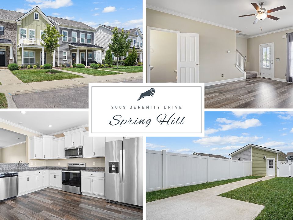 This gorgeous townhouse is the perfect blend of charming and modern. Built in 2020, the three bedroom home stuns with a large kitchen, fenced in yard, and detached garage. With white cabinetry in the kitchen and large windows throughout, the home feels bright and open. Minutes from the shopping and restaurants in the Crossings of Spring Hill, the beautiful subdivision features a resort style swimming pool, community garden, dog park and miles of walking trails all accessible by just stepping outside your front door.