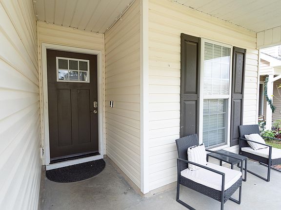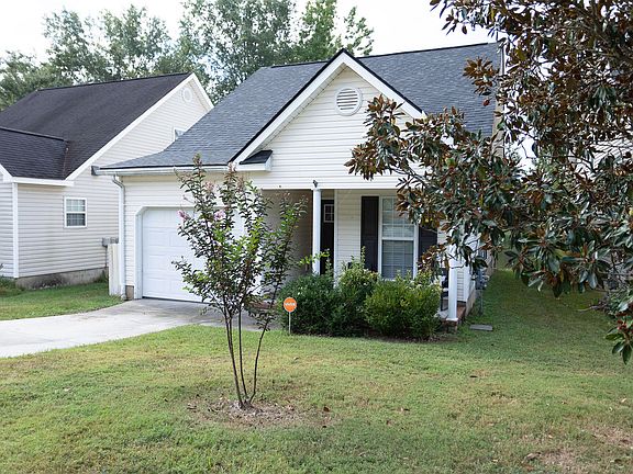 YOU''RE HOME - Enjoy mornings of the sunrise and evenings of sunset on your back deck overlooking the captivating view of the serene pond with walking trail from the backyard. Charming cottage with large great room, gas fireplace w/ tiled hearth. Dining area open to the great room area from the kitchen. Granite counters and beautifully tiled backsplash, stainless appliances (glass top stove, microwave range, dishwasher, and refrigerator), 2 pantries, laundry, 1/2 bath and luxury vinyl plank flooring throughout most of the 1st level. First floor master/ensuite with walk in closet. Two bedrooms on 2nd level with guest bath. Loads of storage space in walk in attic. Double doors from great room lead to your sun deck for outside enjoyment! Single car garage. All located near Patriots Park, Euchee Creek Park, Fort Eisenhower, school complex, shopping, interstate, and more!