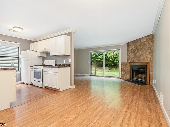 Bright and sunny 2 bedroom condo in the desirable and pet-friendly Spruce Hills development. First floor unit with private backyard patio that backs up to open farmland, the very best location in the community!! Completely updated and move in ready. Beautifully updated galley kitchen opens up to full dining room and living room with gorgeous stone wall fireplace and sliding glass doors to peaceful, wooded backyard. 2 spacious bedrooms, including a master with walk-in-closet and sliding glass doors to balcony. Updated full bathroom, convenient laundry room, oversized coat closet, and large storage closet. Many special features and updates throughout - brand new sliding glass doors, crown molding, laminate floors, central a/c 2019, furnace 2017, water heater 2018, refrigerator 2021. All appliances included. Amenities include lovely pool with a mountain view, basketball courts, tennis courts, and dog park. Great location close to 31, 78, Clinton, Spruce Run Reservoir and more!!