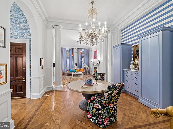 Dreaming of renting a striking space in a historic building off Rittenhouse Square? This pet-friendly home is perfect; both as a large and comfortable living space, and as an inspiring work or studio space. Colorful design and art, original details and maximal space - it provides over 2,100 sqft above ground and an additional 1,700 sqft of space in the finished basement. You'll immediately notice the soaring 13-foot ceilings, fluted columns, and incredible historical details - with luxurious design including custom window treatments, built-ins by Philadelphia Wood Co, and Tom Dixon lighting. Get inspired in the grand living room with inlay flooring and plaster details. The breakfast nook or entry area includes built-in storage in periwinkle millwork. Follow the brass railings up into the dining room! A large, mirrored space, perfect for hosting and with direct kitchen access. The kitchen has tons of cabinetry, new appliances and countertops. Completing this wing of the first floor is a guest room or office, with an en-suite bathroom and closet/dressing area. Down a meandering hallway you'll find a second, more private wing. This primary suite is easy to close off from the main living space. The bedroom is magical and cozy with a king bed - custom drapes hanging happily from a large bay window. The full bathroom is adorned in cut marble and has a shower/tub combo. From the primary suite hallway is a staircase to the lower level and bonus space(s). It offers additional living space, with its own living room (or home gym, playroom, etc.), a full bathroom, and another bedroom/yoga room/studio. There is a very large storage closet, wine cellar, and laundry room. With the possibilities to be rented furnished or unfurnished, it's truly a rental filled with opportunities! 2009 Spruce St Unit C offers convenient first-floor living, with all the security of a condo. It's tough to find such luxury in this dreamy of a location - steps from the best in Rittenhouse Square, blocks from Schuylkill River Trail and Dog Park, and close to delightful coffee shops, boutiques, and restaurants like Parc, Trattoria Carina, Via Locusta, and so much more!