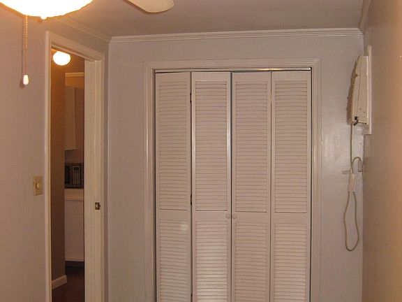 Full-size refrigeratorFull-size electric stoveLots of windowsGalley kitchenHardwood floorsCeiling fans