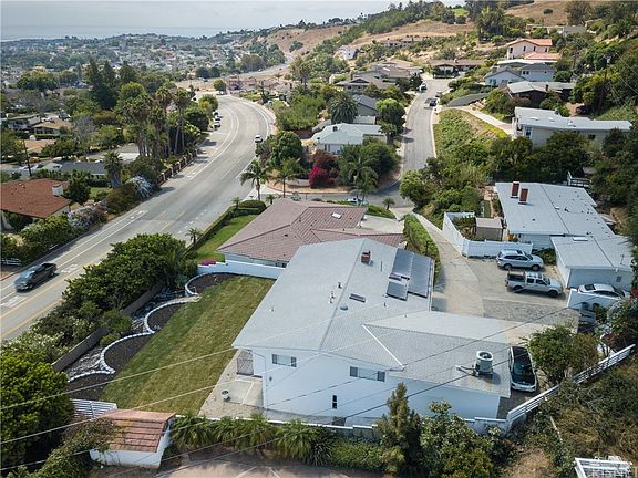 Up a private driveway, with panoramic views of the ocean, coastline, city lights and the harbor, this beautifully upgraded home features open floor plan with abundant natural light, large family and game room, two master ensuites, and so much more. Recess lights and engineered wood floors throughout, newer kitchen cabinets, quartz counters and SS appliances. Bathrooms feature modern floating vanities, medicine cabinets with LED lit mirrors and SS rainfall shower panel rain massage systems with jets & hand shower. One of the masters features ocean views and spa like bathroom with radiant heated floors, soaking tub, massive walk-in shower and custom closet. Wrap around balcony and large patio provide plenty of room for outdoor entertainment. A grassy backyard offers plenty of room to add a pool if desired. Upgrades also include tankless water heater and solar panels. Easy freeway access, minutes away from the coast and numerous parks. This private and peaceful home, with its stunning views and outstanding public schools (PVPUSD) can be your dream home. A must see!