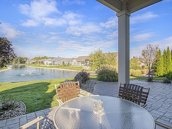 Spectacular custom built home with full length view of lake and fountains. Panoramic yet private feel from the covered patio-which could easily become a screened porch or 3 season room. Finishes are top of the line from the appliances to heated bath and shower floors. Gorgeous tile. Special order crown molding and bath fixtures. Andersen windows 400 series, daylite and egress windows, large kitchen and open great room is perfect for today's easy life style living. The large family room is huge and ready for larger gatherings and holidays. Oversized 3 car garage is extra deep and heated with stationary tub and tons of storage room. You must see it to feel the relaxing luxury of this home. List of amenities available. Please note taxes have no exemptions and will drop to approx $4000 when filed.