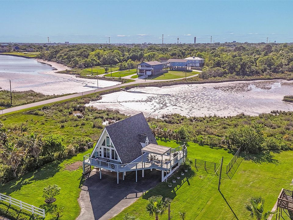 Unique "A"-Frame single family residence located near Galveston Bay in Seabrook. Ground level provides an over-size, 1-car garage w/storage area & full bath. A large wrap-around deck provides views of Galveston Bay & a tidally influenced lagoon at the rear of the property. No back neighbor. Interior features tile floors in the family room, kitchen, dining area and bathroom & carpet flooring in the bedrooms. The kitchen has slab granite counter tops, triple S/S sink, large triple window overlooking the backyard and lagoon, built-in microwave and full size refrigerator. Stackable washer and dryer are included. Large fenced backyard with storage shed/workshop. Covered parking and room to park a boat or RV. Easy access to Hwy 146 and NASA Rd. 1. Minutes to Kemah entertainment district, Clear Lake and NASA's Johnson Space Center. Pets are considered on a case by case basis with an additional pet deposit required. Landlord requires a minimum 1-year lease. Property is immediately available.