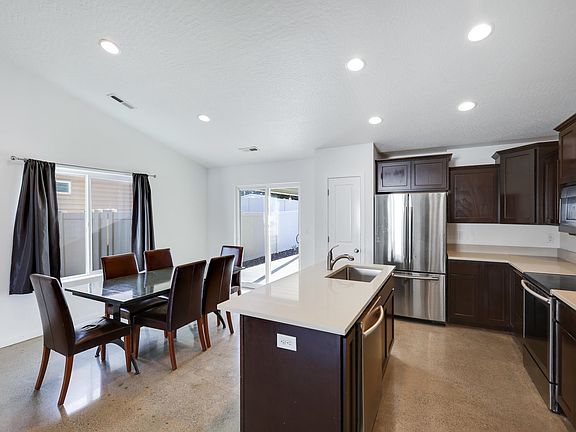 This ZERO step 3-bedroom, 2-bathroom home in the desirable River District offers 1,272 square feet of modern living. Highlights include quartz countertops, stainless steel appliances, built-in surround sound system, custom polished concrete floors, central AC, and an oversized garage. The fully landscaped backyard is perfect for entertaining and features a covered patio, firepit, natural gas BBQ hookup, garden shed, and offers direct access to a large greenspace. Located just blocks from Orchard Park, restaurants, the Spokane River, and the Centennial Trail, this home checks all the boxes!