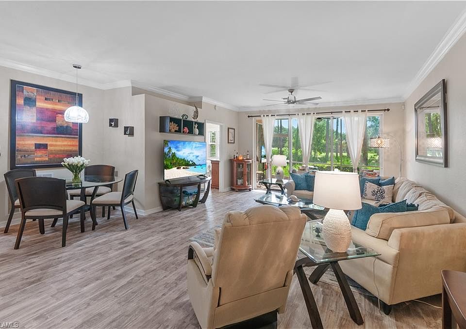 Coveted First-Floor Condominium FURNISHED with Impressive Recent Upgrades and Golf Course Views in Estero’s Grandezza Community! Welcome to this pristine and beautifully updated FURNISHED FIRST-FLOOR Condominium, Stock Builder, offering the perfect blend of elegance, functionality, and convenience. With a split floor plan featuring 2 spacious bedrooms, a versatile den with a sleeper sofa, and 2 full bathrooms, this home is move-in ready and thoughtfully designed for comfort. Boasting over $50,000 in recent upgrades, this home features a new roof, a single-car garage with additional room for a golf cart, and a large screened-in lanai with brand-new no-see-um screens (January 2025) overlooking the scenic 7th fairway. The HVAC system—including AC exchange, water heater, and Ecobee Smart Thermostat—was replaced in 2021 for energy-efficient comfort. Flooring has been upgraded to luxury vinyl plank (LVP) throughout the entire home—no carpet in sight. The primary bathroom showcases a brand-new walk-in shower (May 2025) with a sleek barn door-style glass enclosure, creating a spa-like retreat with a modern touch. Every room is enhanced with plantation shutters, upgraded lighting, and modern ceiling fans, while both bathrooms include new vanity lighting, framed mirrors, and new toilets (2024) for added convenience. This pristine home is being sold furnished—just bring your toothbrush and move right in to start enjoying the "Grand Life"! Why pay high seasonal rents when you can have your own piece of paradise? Ideally located within walking distance to the Grandezza clubhouse, you'll enjoy access to multiple restaurants, bars, and a lively social scene just steps from your front door. Grandezza offers a premier lifestyle with a 53,000 sq. ft. clubhouse, resort-style pool and spa, Har-Tru tennis courts, bocce, state-of-the-art fitness centers, and an 18-hole championship golf course designed by Darwin Sharp III. Plus, enjoy the unbeatable convenience of nearby RSW airport, I-75, Hertz Arena, Miromar Outlets, Gulf Coast Town Center, Coconut Point, fine dining, entertainment, and white sandy beaches. Don’t miss this immaculate, move-in-ready home with $50K in upgrades—schedule your private tour today and start living the Florida lifestyle in style!