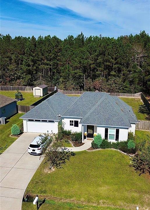 Covington's newest custom beauty! Located in the desirable Tammany Terrace is this 5 years young home situated on a premium 90x162 lot! Two car garage with plenty of parking and rear yard access outlined with a beautiful wooded backdrop. Inside you will find soaring ceilings and beautiful wood floors throughout! No carpet! Kitchen boasts large walk-in pantry with custom wood shelving, shaker style cabinets, stainless appliances, huge center island all with beautiful quartz counters! True split floor plan with spacious secondary rooms and large mud room area off kitchen with custom built bench, shiplap, and storage nooks next to your separate laundry area. Plenty of natural sunlight throughout the home. Step into your primary suite with tray ceilings and massive walk-in closet. On suite bath includes separate dual vanities along with large garden tub and walk-in tiled shower. Spend your evening on the back porch overlooking the backyard or enjoy the cool nights by your fire pit! This home is turn key and ready for you to call "home".