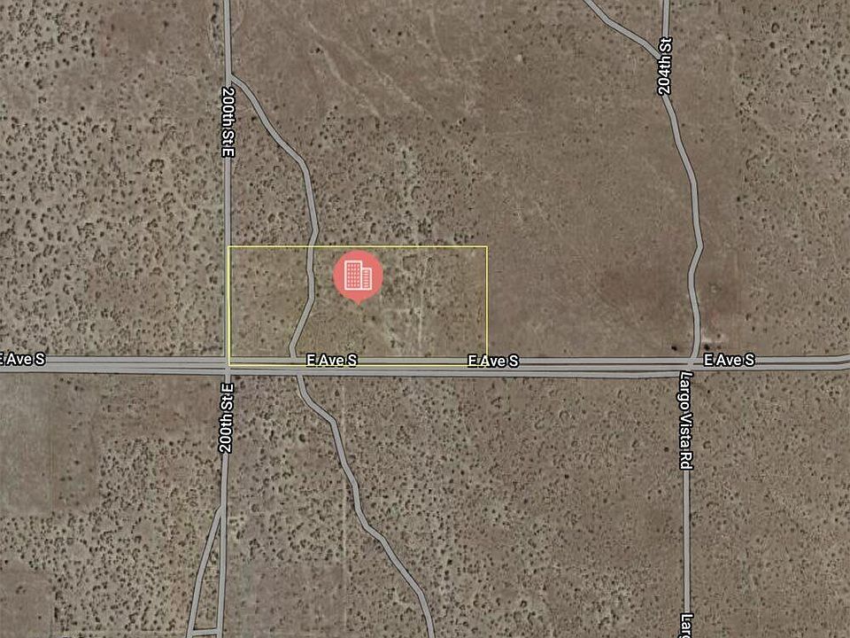 Affordable rural acreage at 200th St East on Ave S, NE corner. Investor parcel, zoned A 2 (heavy agriculture), R L 10 (one home per 10 acres). One additional dwelling unit (ADU) allowed by LA County. Seller is out of the country. Property has received a 'clean up' violation letter from Los Angeles County Health Dept, see below. Buyer to assume responsibility of cleaning property. Area of parcel is SE of Lake Los Angeles and NE of the Pearblossom area. Nearest elec power line is 1.1 mi to the west at 189th St East, on Ave S, in front of a residence. All cash. Buyer and buyer's agent to verify all information provided herein by listing broker.