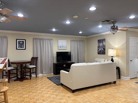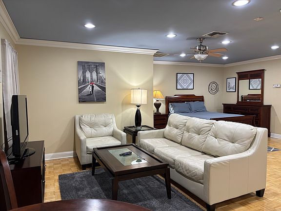 Spacious "mother in law suite" style apartment . All utilities included .Wood floors, designer furnishings including leather sofa's and smart TV. Walk in closet and full size kitchen. Washer and dryer also included. Off street parking and small yard . Also includes WIFI, . Pest control and Lawncare .