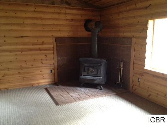 This 2 bedroom charmer has been lived in year round with a freestanding wood stove and electric heater. Large jacuzzi tub and shower with tiled floors and walls in bathroom. Nice kitchen cabinets with electric stove, refrigerator and room for dishwasher. Washer and dryer are in the second bedroom closet. Nice yard and large metal 3 stall garage with electric and circular drive. Newer plumbing has been installed. Some finishing needs to be done yet