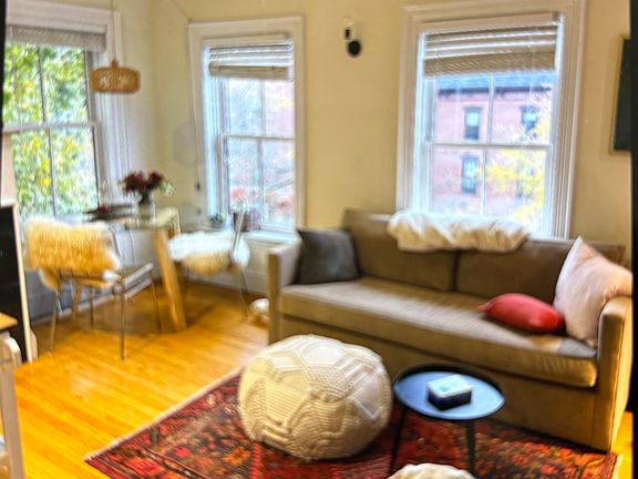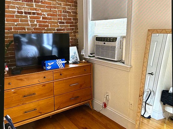 Great location for walking everywhere. Historic brick building. Hardwood floors, cherry cabinets, gas fireplace and stunning woodwork. Lots of light. W/D hookups. Stainless appliances.