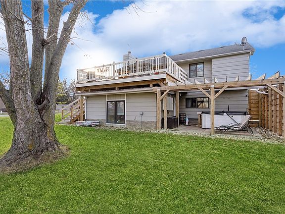 Welcome Home! 4 beds, 3 baths, WDM 4 level-split. Upon entry, you are greeted by a cozy updated eat-in kitchen with SS appliances, including a Bosch dishwasher, making meal prep and cleanup a breeze. The upper level features a primary bedroom with walk-in closet and ¾ bath, full bath and 2nd bedroom. The inviting family room has a vaulted ceiling offering a picturesque view through sliders to a 2-tiered elevated private deck and spacious backyard backing to the trail. The wood-burning fireplace adds warmth and charm, creating the perfect setting for cozy evenings in Iowa’s cold winters. Down a level, you'll find another family room, two generous bedrooms, 3/4 bath, unfinished LL offering plenty of storage. The backyard is lined with a greenbelt, creek, and a walking trail leading to Fairmeadows Park, making it an ideal retreat for nature lovers. Enjoy the outdoors with the nearly 600 square foot deck and patio featuring an included hot tub, offering privacy and the perfect setting for relaxation and entertainment. This outdoor oasis provides a serene escape from the hustle and bustle of everyday life.
