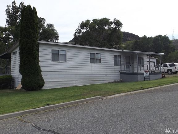Tidy 1979 Sherwood 24x44 manufactured home with Johnson Creek flowing through back yard with additional land on opposite side of creek. Two bedrooms, walk in closet and bathroom off master bedroom. Roomy kitchen area with breakfast bar, laundry room, dining room combined with open space living room. Wood stove in living room, a/c for summer. RV parking, 24x28 detached garage. Corner lot, easy walking distance to local businesses. View of the surrounding mountain sides.