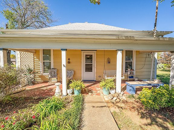 Discover this charming 3-bedroom, 1.5-bathroom home with an additional storage building, nestled in the heart of historical Downtown Krum. Conveniently located on a corner street directly across from Hattie Dyer Elementary, this delightful residence blends enchanting original elements with modern updates. Enjoy updated windows that flood the space with natural light, along with updated kitchen cabinets for ease of use and mature landscaping that adds to the curb appeal charm.The home features three generously sized bedrooms with closets, high ceilings, and 1.5 baths for easy morning routines. A full-size laundry room provides access to the backyard, while the cozy living room invites you to relax and unwind. The kitchen serves as the heart of the home, offering ample storage and space for a full-size kitchen table, making entertaining a breeze. Whether hosting a crowd or just a few guests, there is plenty of room for everyone. Additionally, a storage building on the property enhances the home's functionality by providing extra space for your storage needs. This property is being sold as-is, presenting a unique opportunity to make it your own in a prime location.