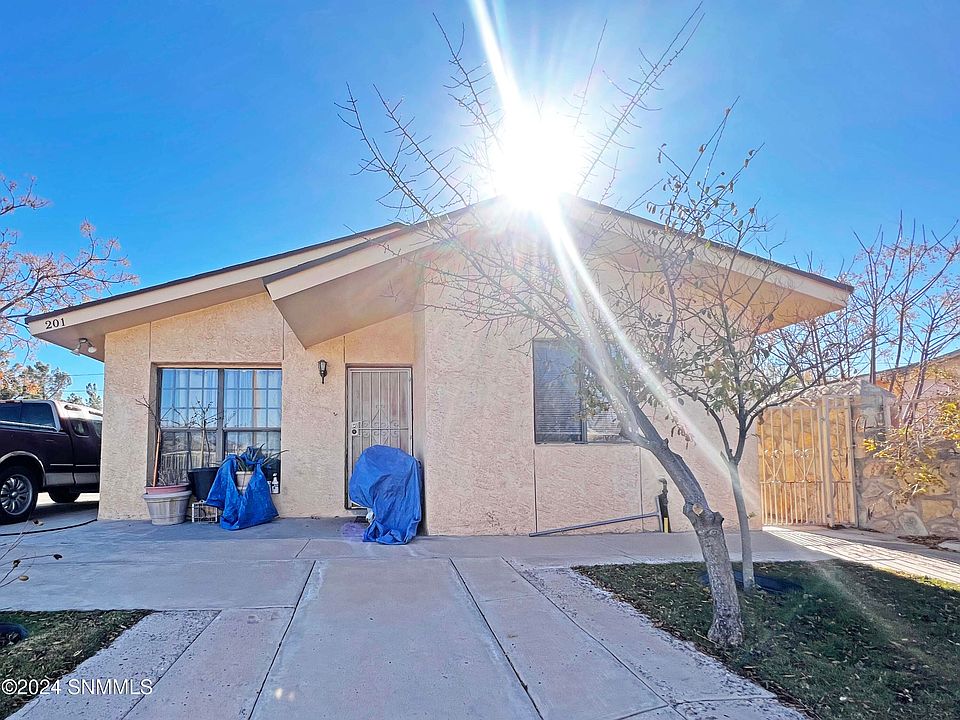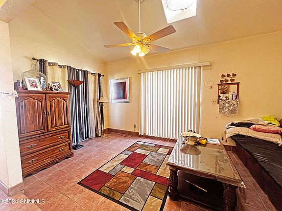 This 2-bedroom, 1-bathroom home offers 835 square feet of living space, built in 1997, with tile throughout. For HVAC you have evaporative central air and forced air heat. Situated on a spacious corner lot, it features a rock wall with ornamental metal fencing, a low-maintenance concrete patio, and RV access with two gated entrances off 5th Street and Granada Avenue. The layout provides easy access and ample parking, making it both practical for get togethers. Perfect as a starter home or investment property, this is a fantastic opportunity for anyone looking to expand their portfolio. Enjoy lower property taxes while staying just minutes from the shopping, dining, and entertainment of El Paso, TX. Don't miss your chance to own this versatile property in Southern New Mexico!