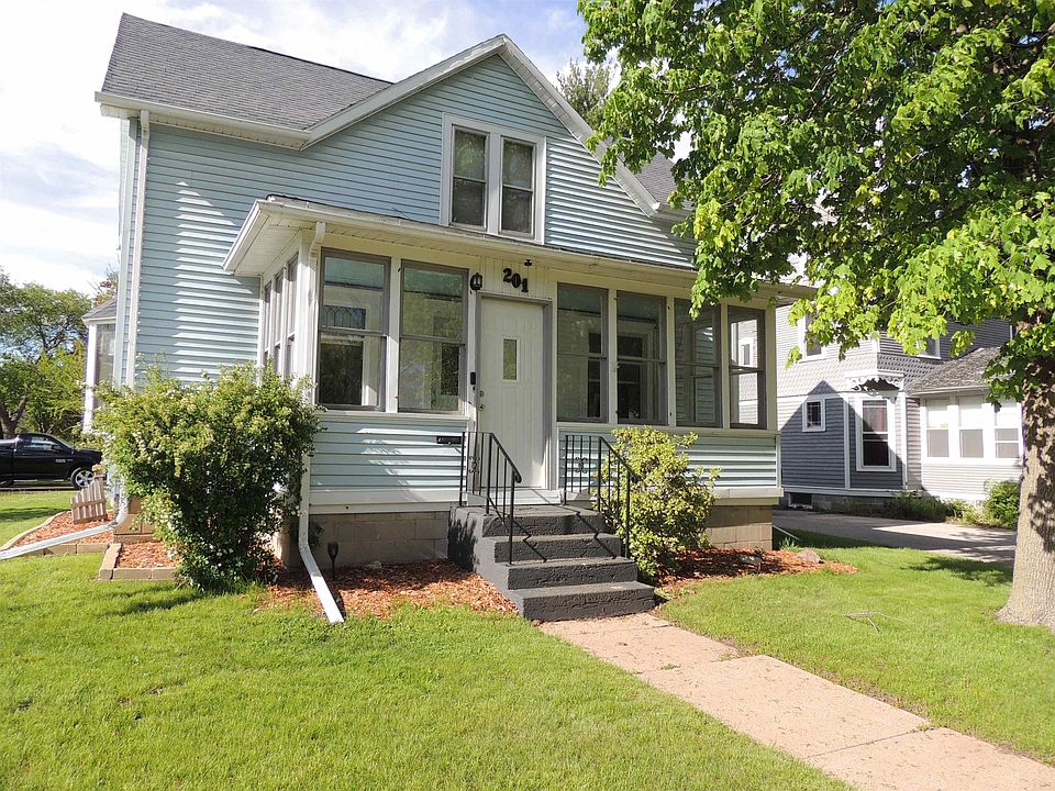 Nestled on a charming corner lot in Waverly, this inviting 1 ½ story residence awaits its fortunate new owner! Featuring over 1,080 sq. ft of space, this well-maintained home, built in 1916, has been thoughtfully updated over the years! Step through the welcoming front 3-seasons porch into the spacious living room adorned with an eye-catching brick accent wall and a cozy wood-burning fireplace, perfect for chilly evenings. The kitchen was recently refreshed with a coat of paint, new stainless steel appliances, has newer cabinets and counter-tops, and a large standing pantry cupboard! Beautiful wood floors with original, ornate window characterizes the formal dining area off of the living area and kitchen. Upstairs, discover two generously-sized bedrooms, complete with large closets, and a remodeled bathroom boasting new flooring, fresh paint, new toilet and shower/tub, and so much more! The basement presents exciting potential for a third bedroom and/or additional family room and bathroom, offering versatility to suit your needs, plus newly installed 200 amp electrical service. Outside, the home displays durable vinyl siding, a roof replacement in 2008, a new concrete patio installed in 2019, beautiful mature landscaping, and an impressive OVERSIZE double stall garage with workbench, providing ample space for vehicles and storage. This property has been taken out of the flood plain and the basement has remained dry since the 2008 flood, offering peace of mind for the new owner. Embrace the opportunity to make this delightful residence your own – schedule a showing today and prepare to fall in love!