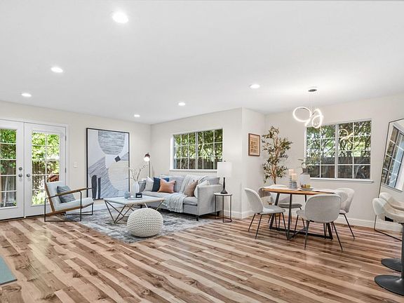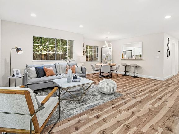 Tucked away in premium location of serene community, this extensively updated townhome feels more like a single family house thanks to its end-unit position, huge wraparound yard and direct access to community pool from the beautiful backyard surrounded by mature trees providing ultimate privacy. Wood-like flooring and double paned windows extend throughout, highlighting functional floor plan expanding over 1750 sq.ft. Open & bright, main level features living area, dining area and a pass-through counter with seating connecting to the all-new kitchen. Spacious & open kitchen boasts new white cabinetry, new marble-style counters, new backsplashes, new tile floors, stainless steel appliances include brand new oven & hood. Primary suite includes a huge private balcony overlooking beautiful greenery. Spa-like primary en suite bath is beautifully updated, featuring dual-sink vanity with Carrara marble counter, large-format tile floor, soaking tub plus ginormous frameless-glass shower. Added convenience comes with the upstairs laundry area, central A/C with NEST thermostat, attached 2-car garage. Amazing location - moments away from Google (Googleplex accessible thru Stevens Creek Trail nearby) & major tech companies, downtown Castro Street, fwys 85, 101 & 237 + Central Express.