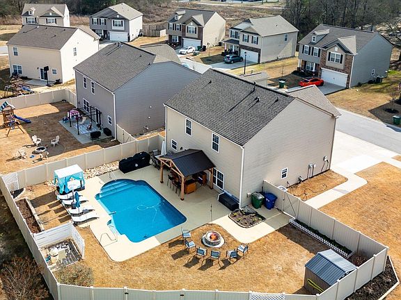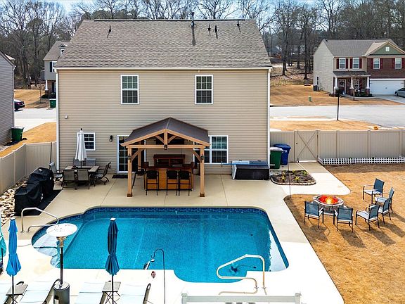 Summer is coming. Wouldn't it be nice to have your own backyard oasis? 201 Addlestone circle has that and so much more! Pulling up to the home you can see that the home has been meticulously maintained. From the professional landscaping, and vinyl fencing, to the extra parking pad and the custom painting you can see the pride of home ownership. Walking in the home that continues with fresh paint, custom lighting and beautiful LVP flooring. Upon entering there is a spacious dining room on your right, beyond a half bath, and beyond that is the kitchen, breakfast area, and living room that are open to each other. The kitchen boasts granite counters, an island perfect for food prep, and a custom tile backsplash. The living room has a cozy fireplace complete with gas logs. The sliding doors beckon you to enter the backyard where all I can say is WOW! Perfect for entertaining there is covered porch with an outdoor bar, an eating area, a lounging area. There is also a fire pit, perfect forgathering on those chilly evenings. As well as a storage shed for all the extra stuff you don't want in the garage. Upstairs are three ample sized bedrooms and a bonus/loft area. All bedrooms and bonus have luxury high end new carpeting. The bathrooms are beautifully updated with LVP flooring and other custom touches. All this within walking distance of the adorable Main Street of fountain inn where there are quaint shops and yummy restaurants! Come see it today before it is SOLD!