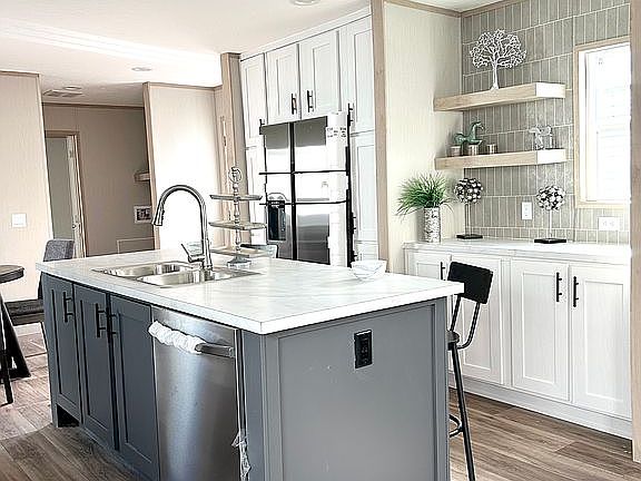 Delivery, skirting, AC unit, steps, and appliances (stove, refrigerator, dishwasher) are all included!