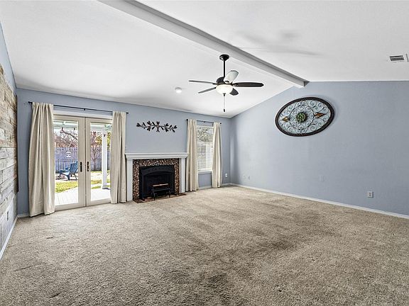 Wonderful Pflugerville home WITH HUGE PRICE IMPROVEMENT! This delightful home, located less than 5 miles from Austin, is perfect for a first time buyer or a forever home buyer who wants a well-designed home they can really enjoy! This great one story floorplan has an open living/dining area with a vaulted ceiling that opens to attached an extra-wide covered back patio. The large kitchen has bright white cabinets, stainless steel appliances, granite countertops, a built-in desk and room for a kitchen table. The 3 bedrooms are placed in the middle and back of the home keeping them nice and quiet. The primary bedroom doesn't share walls with the second or third bedrooms. Outside, in addition to the attached extra wide patio, the big yard has a covered outdoor gazebo area with a fireplace that works for fun gatherings and doubles as a pizza or roasting oven. The side yard can be easily sectioned off for dogs or chickens and there is a storage shed included. The flat driveway has recently been redone and is a nice spot to consider a basketball hoop or to use for pickleball practice. The home also has working solar panels to lower the power bill. This home is truly well-designed for enjoying life both inside and outside. The amount of covered outdoor living space makes the home live bigger than its actual size! Come see it soon so you can check out all it has to offer!