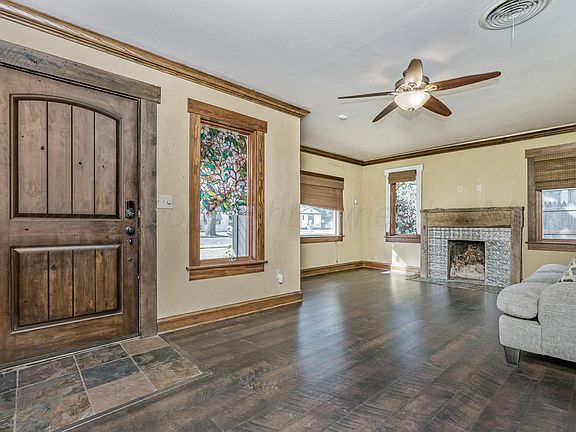 The cozy living room welcomes you in with easy flow into the dining area and kitchen, ideal for relaxed meals or casual get-togethers. The kitchen maintains its timeless appeal with original touches and plenty of storage.