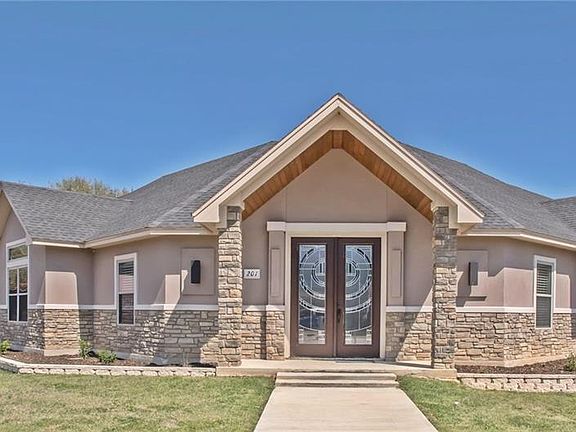 Beautiful custom home in Shiner's newest neighborhood. This pristine 2,268 square foot, 3 bedroom 2.5 bath home with 362sqft apartment hosts a number of upgrades and custom features including an open kitchen, dining and living area. The kitchen has granite countertops, stone accented center island, walk in pantry, custom cabinets, stainless steel appliances and plenty storage. Custom wood floors run throughout the home. Builtin cabinets in the bedrooms and a beautiful stone accent wall in the master bedroom. The 362 square foot efficiency apartment is attached to the 2 car detached garage. The apartment has hook ups for a stove and refrigerator, full bath and a large walk in closet. A 1,015 sqft covered patio looks out onto a beautiful pool and hot tub. The yard is fully fenced for privacy.
