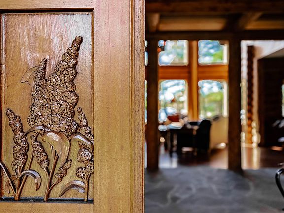 Custom built Western Red Cedar. 4 master bath suites. Gourmet kitchen, hand scraped hickory floors and mahogany trim throughout. Office and loft on second level. Lower level has media room, full wet bar, bath, fully equipped gym and sauna. Hot tub on the deck that runs the length of the home. Custom stone patio. Radiant heat. Sound system. This home was featured in Maine Home Design and Log Home Living.