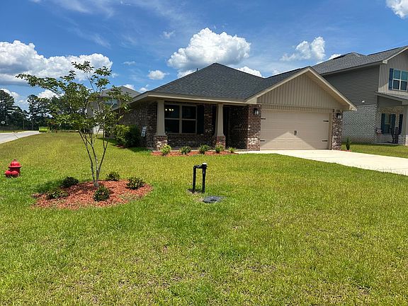 4-sided brick NEW BUILD! Corner lot, close to the gorgeous community pool that is there for your enjoyment. This 1727 sq ft home is being built in one of our most loved neighborhoods located in North Crestview. Ridgeway Landing is within close proximity to shopping, schools, the hospital, and restaurants. Location will not be an issue with this home. This home offers 3 bedrooms and 2 full bathrooms. It comes with both a covered front and back porch, fully sodded yard with some landscaping, irrigation system, and a 2-car automatic garage. Some upgrades that are being added to this home include craftsman style elevation, granite countertops throughout, upgraded flooring everywhere with carpet only in the bedrooms and a separate shower and garden tub in the master bathroom.