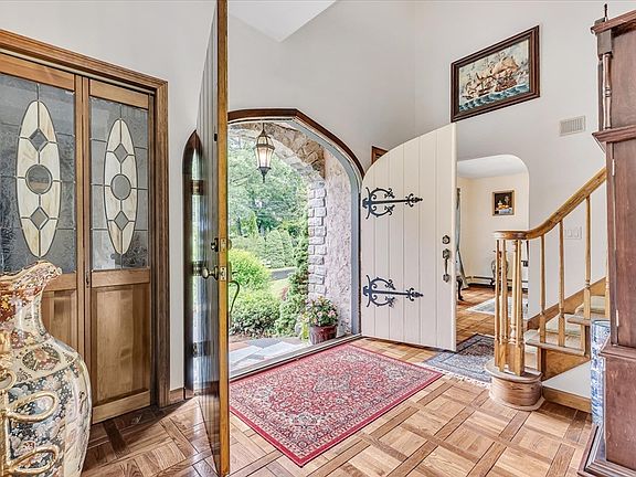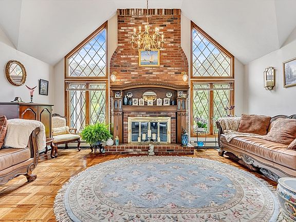 Step into timeless elegance in this stunning 4-bedroom Tudor, once the personal residence of a master builder. Rich mahogany doors welcome you into a home filled with character—featuring a gorgeous antique fireplace, parquet floors, and a sun-drenched sunroom. The first-floor Primary suite offers ease and comfort, while a fully finished basement adds space to relax or entertain. Enjoy peace of mind with a whole-house generator, interior sprinkler system, newer windows, new roof, and new heating system. Dual furnaces (wood & oil) provide efficient warmth. Outside, a tranquil koi pond on a lush 2.95 acre lot completes the picture. A rare blend of craftsmanship, charm, and modern upgrades—this home is truly one of a kind.