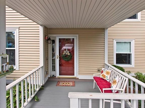 Lovely three level townhouse at highly desired Hammond Place! Features include an inviting living/dining room combination with fireplace and sliders to a beautiful, peaceful and private outdoor deck. You'll love the sun-filled eat-in kitchen with lots of cabinet space and a large pantry too. Also on the first floor, a convenient half bath, laundry area and welcoming entry foyer as you step in from the covered front porch. The second level has a spacious master bedroom with vaulted ceilings and double closets, a full bath with double vanity and a lovely guest room with a large walk-in closet. The third level loft with vaulted ceilings and skylights would make a great 3rd bedroom, office or den and hardwood floors would look fabulous as carpet replacement. Two parking spaces directly in front, an amazing amount of storage space, a great commuter location and close to everything - shopping, restaurants, entertainment, Boston....it's all here!