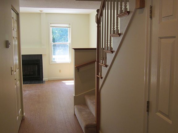 A wonderful place to live with lots of amenities including central air conditioning. This three level Townhouse is in spotless condition. New floors just installed on first level. Bright and sunny unit with porch in front and deck for get togethers out back So private and beautifully kept. The kitchen is equipped with everything you need including stove, refrigerator, dishwasher and hidden in one of the unit's many closets a laundry with washer and dryer. The living room can easily be a combination living and dining room with french doors, and fireplace. 1/2 bath is also on this level. An amazing staircase leads to the second level which has two bedrooms, and again, many closets. Full bath can be entered by hall entrance or master bedroom. The third level offers a large room for storage. Two dedicated parking spots right outside unit. Guest parking also available. The walkways are beautiful with lovely flowers, and shrubs, especially at night with the lanterns glowing. Association responsible for ground maintenance all year. Set up a showing with Joan Collins jcollinsrent@yahoo.com. This unit is everything you could ask for and more. One year lease. Grounds maintained by Association year round. No Smoking No pets. Gas heat, electric and cable are paid by Tenant. New floors on first floor, painted and ready to go. Beautiful complex. Good credit and steady employment and credit history a plus First month, last month and secrity deposit prepaid before occupancy. $400 agent fee