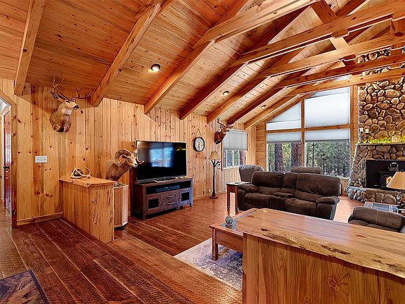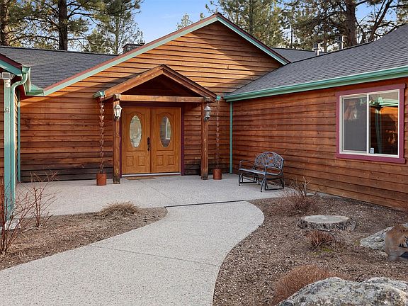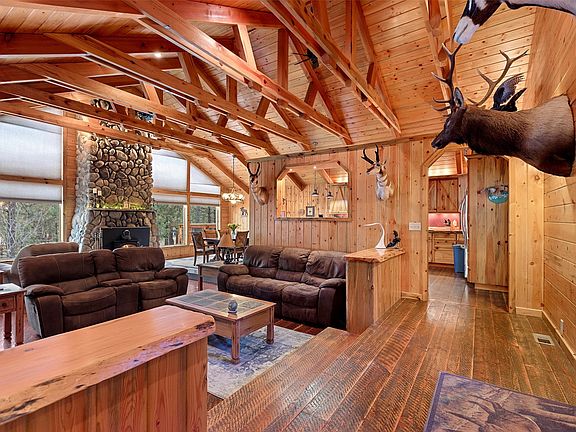 RETREAT-LIKE FEEL!! This beautifully handcrafted home sits on a private, treed 2 acres, just minutes from downtown Hamilton. Upon entry of the home you are welcomed with breathtaking circular sawn wood floors that lead to the living room with a vaulted open beam concept ceiling. This living room features a floor to ceiling stone fireplace surrounded by floor to ceiling windows; perfect for relaxing and enjoying the view! The kitchen and finished patio are ideal for entertaining, complete with a breakfast bar and what feels like miles of live edge wooden countertops, handmade Blue Pine cabinets accented with stainless steel appliances. The primary bedroom features the same wood floors, handmade cabinets and amazing views from both the bedroom and the bathtub. The primary bathroom is complimented with slate stone flooring, a slate stone walk in shower and a bathtub. Call or text Brooke DeVries at 406-531-9721, or your real estate professional today, for a private tour!