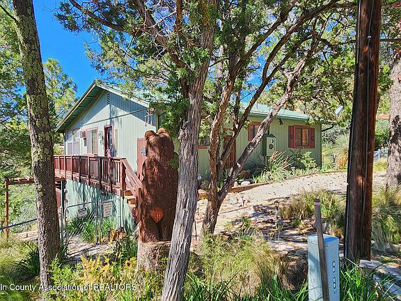 Awesome nightly rental, charming & cozy one level, 2 bdrm, 1 bath, comes fully furnished & ready to enjoy all the mountains & Ruidoso has to offer & make rental income, also. On 2 lots overlooking Ruidoso, looking down to the river, sunroom w/ hot tub, gas FP, large, fenced back yard, ready for you to come take a break & relax in beautiful Ruidoso! Call for appt. to see!