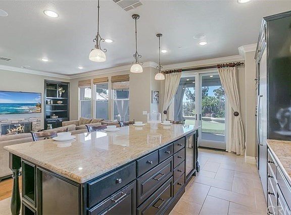 Spacious ocean view home, located on a corner lot of a quiet cul-de-sac neighborhood. Light and bright living room that flows seamlessly into the formal dining room. Featuring wide plank rustic maple wood floors throughout the entire ground level. The fully appointed kitchen w/stainless steel appliances including a Bosch double convection oven, 6 burner stove, and oversized island with wrap around seating is the perfect place to gather while meals are being prepared. An adjacent family room, complete with a fireplace and surround sound, creates an amazing atmosphere for movie nights; while the double doors leading out to the backyard, also equipped with speakers, makes for the ideal indoor-outdoor entertainers' home. The private backyard also features a built-in BBQ, glass fire pit, putting green, and a stacked stone raised flower bed. Enjoy all this plus stunning ocean views that can also be seen from the second story deck, off the master bedroom. Additionally, you can take a soak in the bathtub in the master bath while enjoying an ocean view. Additional features for this home include a 2-car garage, TWO GROUND LEVEL BEDROOMS, two additional upstairs bedrooms with Jack and Jill bathroom, crown molding and plantation blinds throughout the home, lighted ceiling fans in all bedrooms, and a downstairs laundry room. Access to all of Talega's amenities and close to shopping, dining and excellent schools.