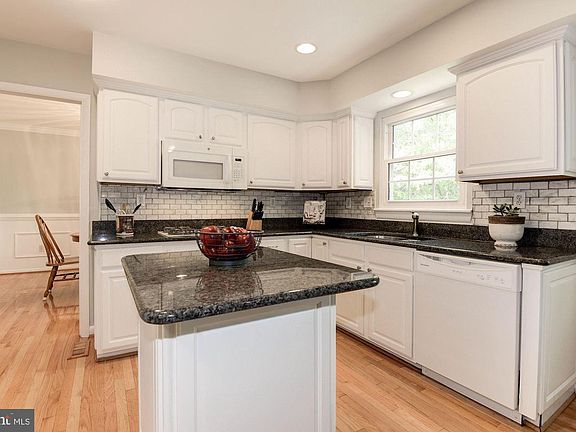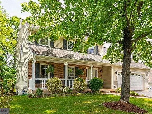 Welcome Home!! Light & bright single family with charming front porch, Gleaming hardwoods on the main and entire upper level! Kitchen boasts granite, professionally painted white cabinets, newer subway tile backsplash & table space with a bay window. Inviting Family Room with a cozy wood-burning fireplace with brick masonry. Spacious living room & dining room. So much attention to detail - crown molding/chair rail/wainscoting, updated light fixures and plantation shutters! Upper level features 4 spacious bedrooms & vaulted ceilings. Lower level is highlighted by brand new carpet and a true walk-out. Enjoy the large deck for entertaining, overlooking fenced back yard. Don't miss this one!