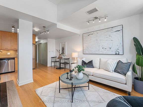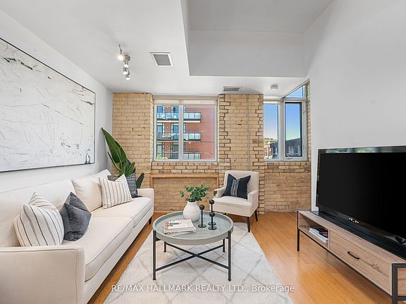 This is the real deal - an authentic conversion loft that checks all the boxes! 1+ Den w/ owned parking and locker included! This prime Leslieville loft in The Printing Factory features original exposed brick, bamboo floors, sunny western exposure, and a completely separate office/den perfect for the busy professional! The layout is smart and functional, featuring an open-concept kitchen with quartz counters and stainless steel appliances, A stacked washer/dryer, and lots of ensuite storage (plus a locker!). Set in the heart of Leslieville at Carlaw and Queen, you'll enjoy vibrant cafés, restaurants, shops, and easy transit at your doorstep, with quick access to downtown, the DVP, and the Beaches. This is authentic loft living, industrial roots blended seamlessly with modern design.