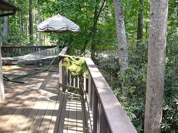 This is a beautiful three bedrooms/two and one half bathrooms house built in 2000, sits amongst boulders, and canopied with Rhododendron and hardwoods. Home is exquisitely decorated. The home has hardwood floors, front and back decks for relaxing and enjoying the beauty of the trees and quiet of this part of Hound Ears. This is one level living with just a few steps up to the deck level and home entry. House has reverse cycle air conditioning and an oversized double car garage. The house is being sold furnished with exceptions, www.201cascades.com at offer acceptance. The ambiance of this home is heightened by the outside landscaping with a great mix of blooming flowers and bushes and evergreen plants and bushes. The front and back of the living/dining area are framed with windows that allow a maximum amount of light in, that with the cathedral ceiling brighten and warm the whole interior setting. This is the ideal home, be it a second vacation home or a primary home! Radon mitigation system installed in crawl space.
