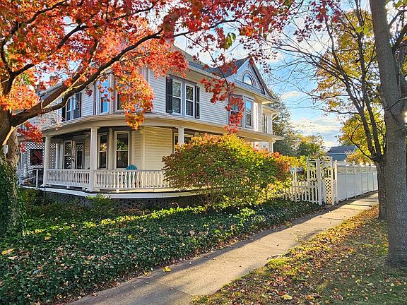 Charming Historic Victorian home on an amazing corner lot. This home is bursting with character and details from turn of the century craftsmanship. Unparalleled care and attention have been given to all the recent upgrades, including new windows throughout, new roof with 6" gutters, dual zoned HVAC units (previous oil furnace and tank are in basement if someone would like to switch back to oil heat), updated electric panels, and a whole house water filtration system. As you enter the grand foyer, you'll notice the hand painted mural from a local artist, and the stained-glass window on the classic stairway. The cozy LR is accented with a beautiful fireplace. The formal DR blends into the open Family Room for memorable gatherings. While all rooms are outfitted with high ceilings and amazing wood floors. An updated kitchen with granite counters and an island rounds out the main floor. Upstairs highlights the 3 spacious BRs (2 with stately Bay windows), an office which can be used as a 4th BR, and an upstairs laundry. Let's not forget the 1500+SF unfinished basement with 2nd laundry area, and a massive walk-up attic for tons of storage space. The detached 2 car garage is perfect for a boat or workshop as well. At the end of the day, you can relax in the oversized yard with Koi Pond or pull up a chair on the incredible wrap around porch.