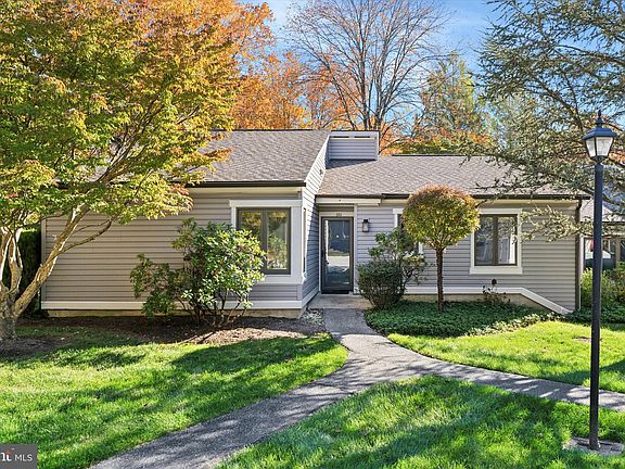 Welcome to this bright and spacious 2-bedroom, 2-bath end-unit in the sought-after Hershey’s Mill community, one of Chester County’s premier 55+ neighborhoods. Step inside to find a welcoming layout featuring a formal dining room, a sun-filled eat-in kitchen with updated appliances and abundant cabinetry, and a large living room centered around a cozy fireplace. A sunroom with skylights and walls of windows invites natural light and frames peaceful views. Step through the sliding doors to a slate patio with an awning, perfect for outdoor dining or quiet relaxation. The spacious primary suite offers a walk-in closet and a private bath with a double vanity, jetted tub, and step-in shower. The second bedroom is well-sized and served by a full hall bath with a skylight and laundry closet for added convenience. Additional highlights include hardwood flooring, ample storage, and a detached one-car garage with extra parking right out front. Enjoy the resort-style amenities that make Hershey’s Mill so desirable—championship golf course, walking trails, pool, tennis, pickle ball, clubhouse, and a full calendar of community events—all within a beautifully maintained, gated 55+ neighborhood just minutes from the shops and dining of West Chester. This move-in-ready home offers the perfect blend of comfort, convenience, and low-maintenance living in a truly exceptional setting.