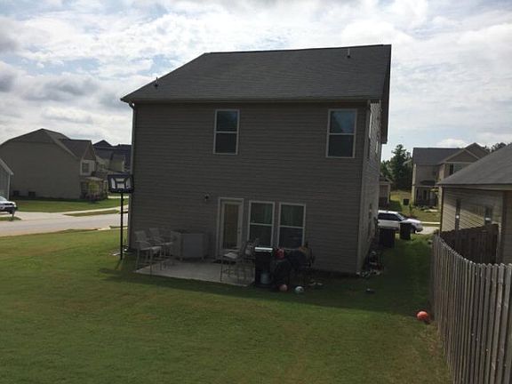 This lovely home located on a large corner lot features hardwood floors in foyer and dining areas, an open floor plan, great room with corner fireplace, kitchen with dark wood cabinets, stainless steel appliances, granite counter tops with terra cotta tile backlash, pantry, an island in middle of kitchen with sinks in it. Double vanity in half bath located downstairs. Upstairs you will find laundry room, and all bedrooms: the owner's suite boast vaulted ceilings, large walk in closets, and owners bath has double vanity, dark wood cabinets and garden tub with separate shower. Bedrooms 1-3 have walk-in closets and are very spacious. Enjoy driving up into your very own double car garage or on the nice parking pad, near the landscaped front yard. The beautiful backyard is great for fun and entertainment. Neighborhood amenities include clubhouse, pool, playground, walking trails an is close to schools, shopping and Patriot's Park. Great home and won't last long!