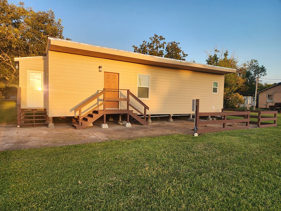This is new construction set up in a studio type fashion without bedroom walls. Central air and heat. Hardwood floors. New appliances. Disposal. 50 gallon hot water heater. Washer/dryer connections in bathroom. Located just outside the Angleton city limits, but has city water and sewer. Property is on some of the higher ground in the Angleton area. Ideal for contractors or other singles. Driveway parking. About 1.5 miles from Highway 288. About 5 minutes from downtown Angleton. 12 minutes to Lake Jackson. Kroger and HEB are in town and Lowes and Home Depot are in Lake Jackson. Walmarts in both Angleton and Lake Jackson.